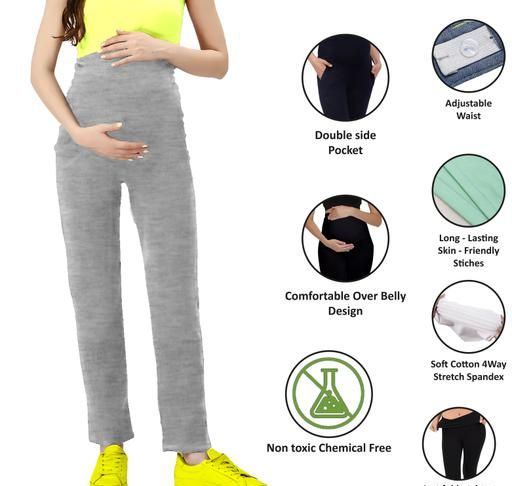 Name: Soft Cotton Lycra Stretchable Maternity Pants with Double Pockets and Full Belly Coverage