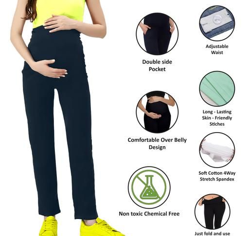 Name: Soft Cotton Lycra Stretchable Maternity Pants with Double Pockets and Full Belly Coverage