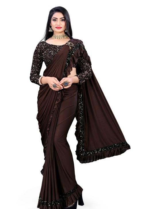 new sadi, fancy sari,Lycra saree, women new sadi for lycra ruffle sari, READY TO WEAR LYCRA FANCY PARTY WEAR SAREE