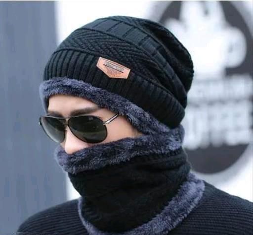 HRIDAY Unisex Winter Knit Beanie Cap Hat Neck Warmer Scarf(Pack of 1)