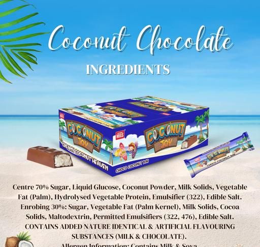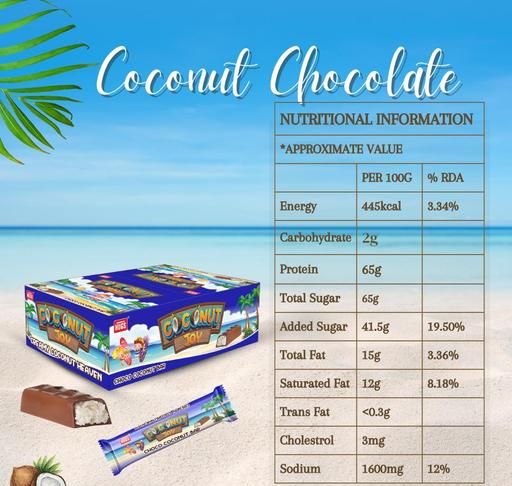 Carlos Coconut Chocolate Bar| Coconut filled Chocolate (30 pcs in a box)