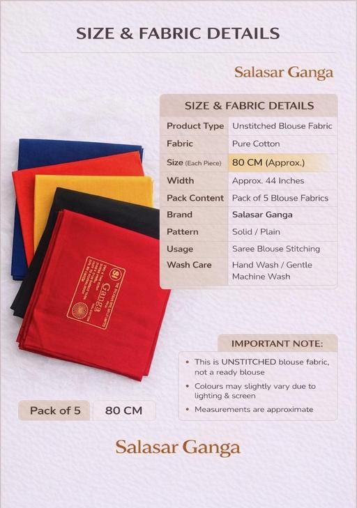 Name: Pack of 5 -GANGA,Pack of 5-Unstitched pure cotton Fabric Combo PLAIN BLOUSE PIECE -0.80CMcotton fabric