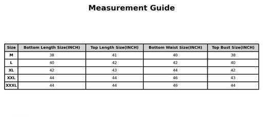 XXXL (Top Length Size: 44 in, Bottom Waist Size: 46 in, Bottom Length Size: 44 in)