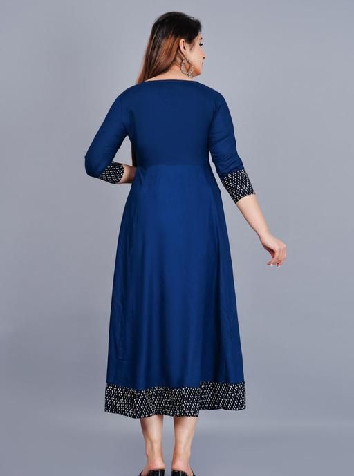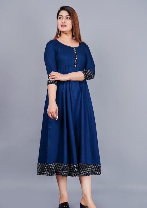 Name: Trendy Women's Solid Printed Round Flared Kurti (Navy Blue)