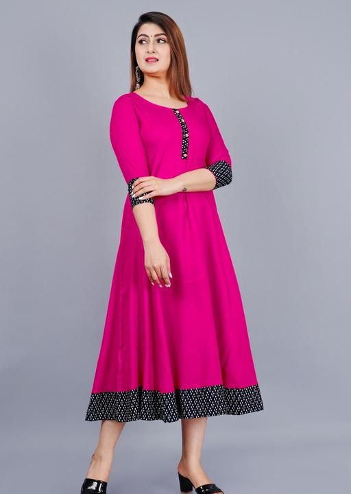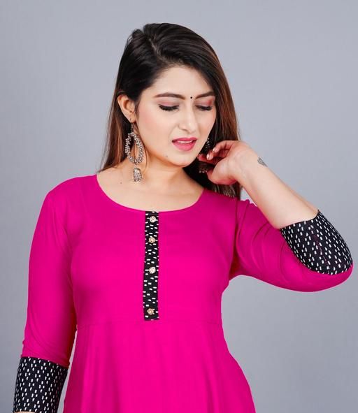Name: Trendy Women's Solid Printed Round Flared Kurti (Pink)