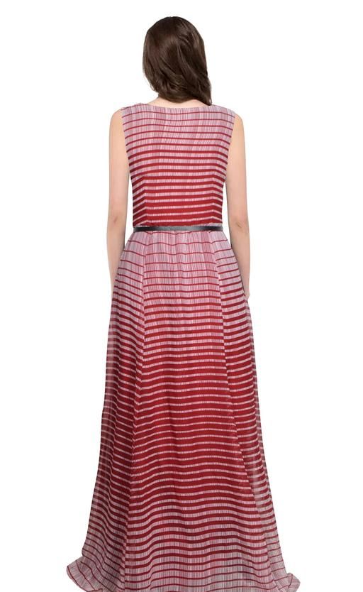 Name: Sleeveless Striped Heavy Georgette Maroon Party Wear Gown (56"Inches)