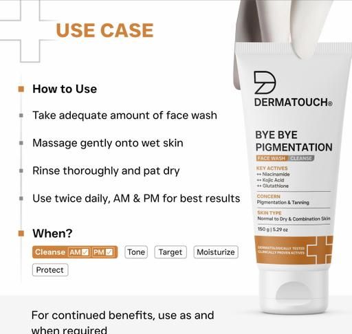 Product Name: DERMATOUCH Bye Bye Pigmentation Face Wash || Anti Pigmentation Face Wash for Women/Men with , Kojic Acid, & Glutathione -150G