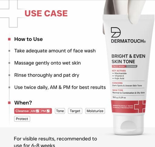 Product Name: Dermatouch Bright & Even Tone with Niacinamide, Vitamin E and Kojic Acid Face Wash - 150G