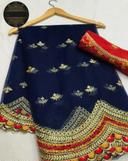 Name: Ikat Net Embroidered Saree With Blouse (Navy Blue)