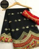Name: New Fashion Style unique Designer Embroidered Daily Wear Organza Net Saree With Heavy Lace and Embroidered Work Blouse (Red)