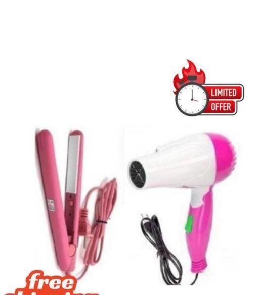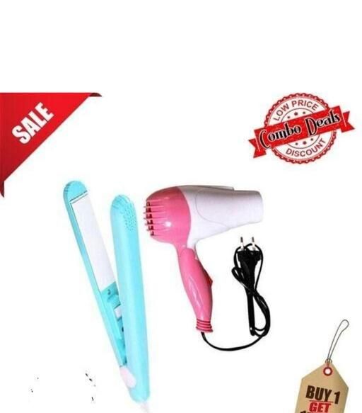 PROFESSIONAL HAIR STYLING KIT COMBO HAIR DRYER MULTICOLOUR 1290 WITH PORTABLE MINI HAIR STRAIGHTENER MULTICOLOUR PACK OF 2 ITEMS
