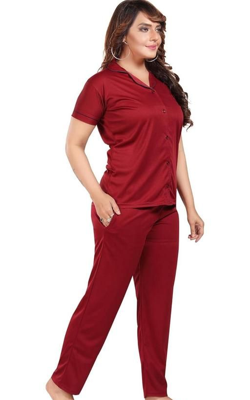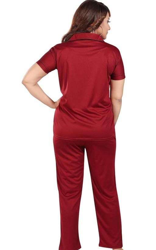 Name: Vivaan Creation, Satin - NS2010 - Collared Night Suit -Plain Top Pyjama Set - MAROON