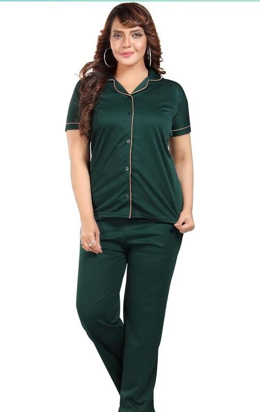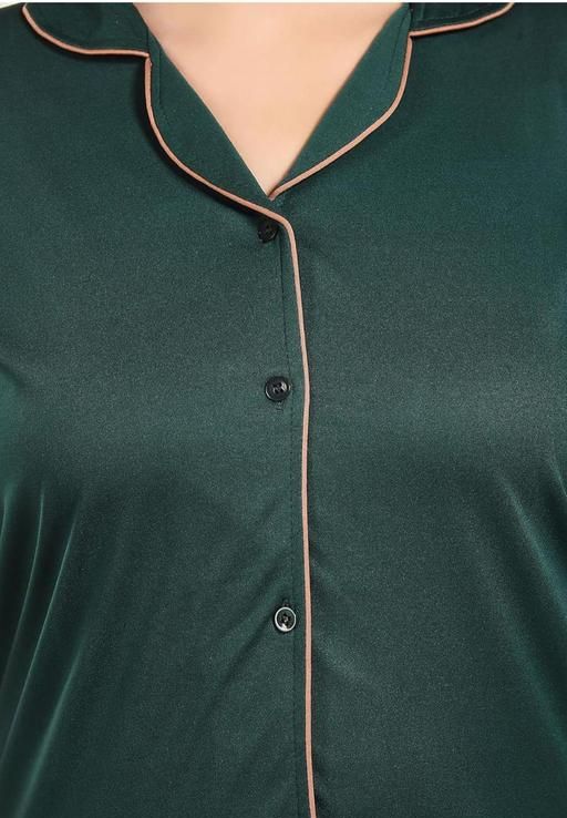 Name: Vivaan Creation, Satin - NS2010 - Collared Night Suit -Plain Top Pyjama Set - GREEN