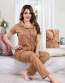 Vivaan Creations, Solid Shirt and Pyjama is designed keeping in mind the ultimate comfort of the user. It is made up of supersoft Satin fabric with notched collar and contrast piping on the shirt & pyjama with a side pocket. Made up of premium quality Satin fabric with extra softness, this cosy and casual style is a Must-be in your night wear collection set.