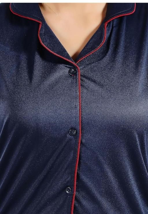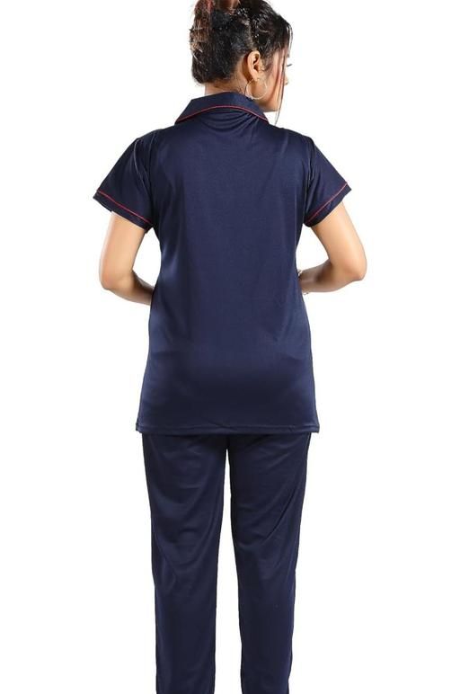 Name: Vivaan Creation, Satin - NS2010 - Collared Night Suit -Plain Top Pyjama Set - BLUE
