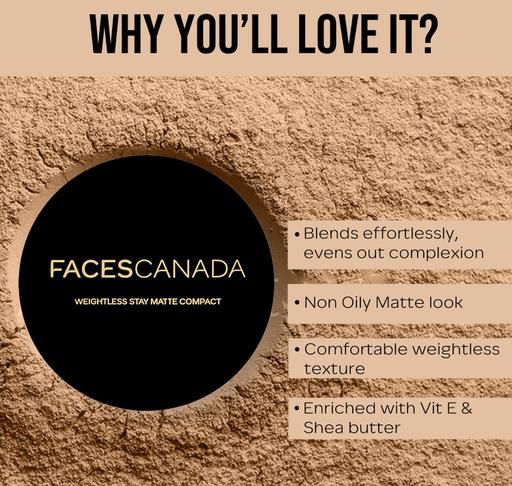 The Weightless Matte Compact Powder is enriched with the goodness of Vitamin-E and shea butter.