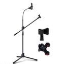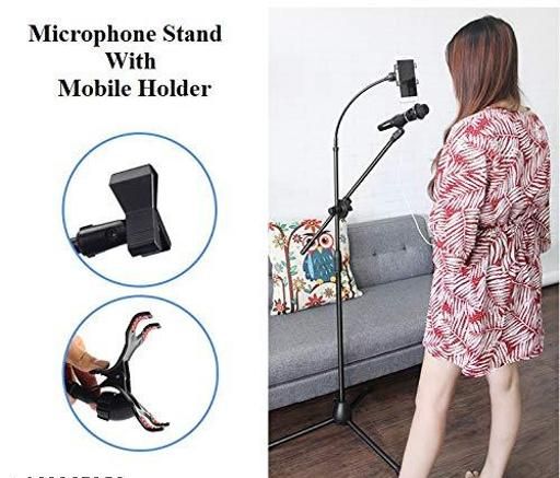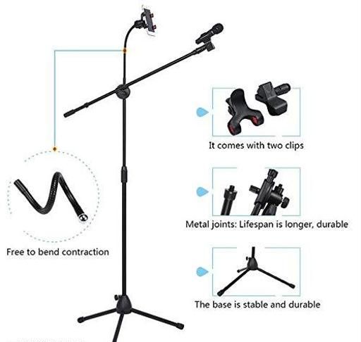 Name: Adjustable Height Mic Stand Microphone Stand for Recording Studio for Live Video Audio Voice Studio Recording Adjustable Mike Stand Floor Type Boom Arm Stand with 360 Degree Rotation Flexible Mobile Phone Holder Clip (Mobile Not Included)
