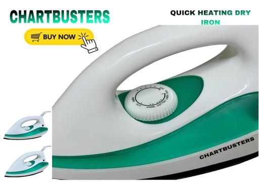 CHARTBUSTERS Keep your clothes looking new with this Non-stick Compact dry iron . Its Coating Plate ensures a smooth gliding experience while the well-designed grip handle ensures a secure and comfortable grip.