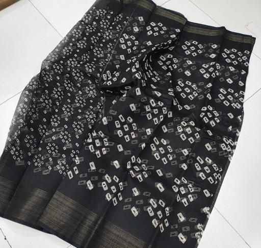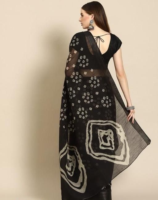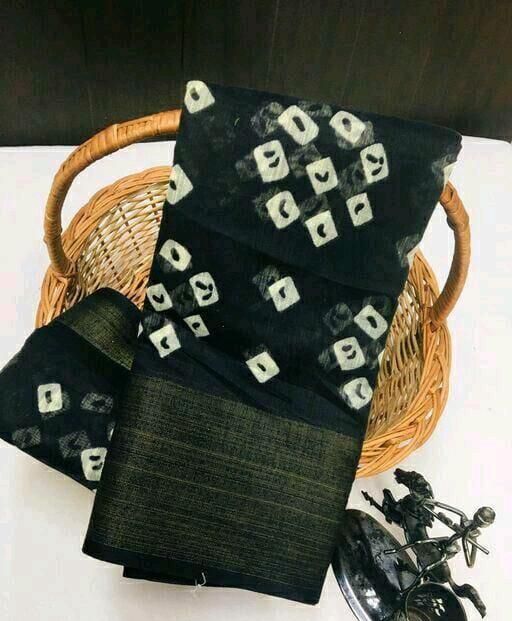 Name: Elegant Black Bandhani Cotton Linen Saree with Zari Border & Blouse | Lightweight Daily Wear Saree for Women