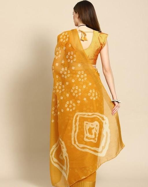 Name: Elegant Yellow (Gold) Bandhani Cotton Linen Saree with Zari Border & Blouse | Lightweight Daily Wear Saree for Women