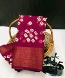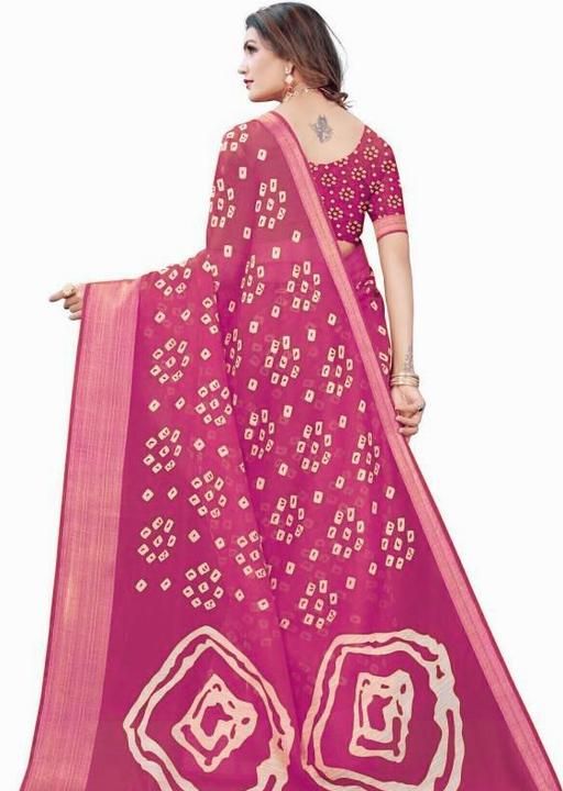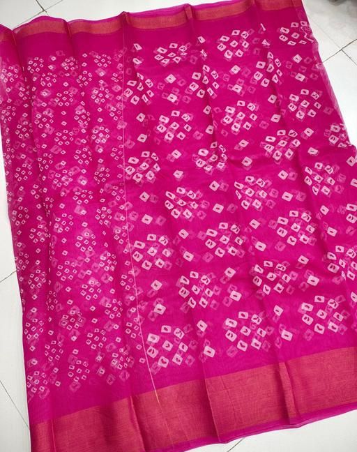 Name: Elegant Pink Bandhani Cotton Linen Saree with Zari Border & Blouse | Lightweight Daily Wear Saree for Women