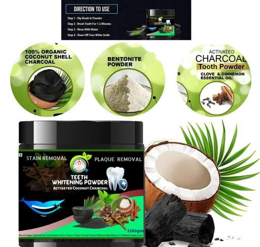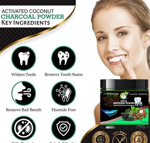 Product Name: 100g Coconut Shell Activated Charcoal Instant Teeth Whitening Powder, | For Teeth Whitening | Strengthens Gums