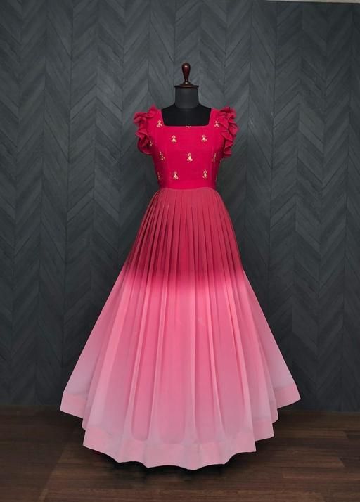 Name: Tilton Women's Pink Faux Georgette Embroidery Ombre Print Gown
