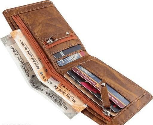 This is a high-quality classic Artificial leather wallet from FANCY CRAFT. This wallet acts as the perfect accessory to complete your look and make you stand out at an affordable price. Featuring an elegant design, hand stitched; dyed and aged this wallet is long-lasting, light weight and a fine quality artificial leather product. It shows your personality and style every time you pull it out. And This wallet made of PU Leather with two zip lock one for currency and other for coin etc. 5 card slots two currency compartments