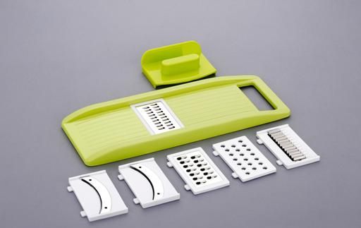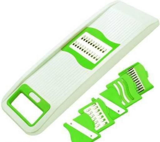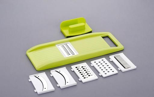 Package contents: 1-piece slicer, 1-piece potato slicer, 1-piece plain slicer, 1-piece ripple slicer, 1-piece grater thick, 1-piece jalli grater and 1-piece grater thin