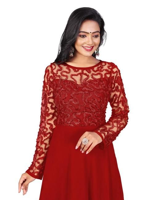 Mentosa Women's Red Faux Georgette With Sequins Multithreaded Embroidered Gown