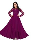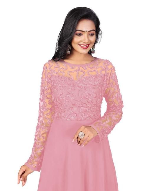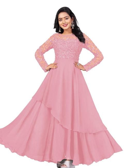 Mentosa Women's Pink Faux Georgette With Sequins Multithreaded Embroidered Gown