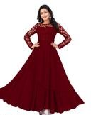 Mentosa Women's Wine Faux Georgette With Sequins Multithreaded Embroidered Gown