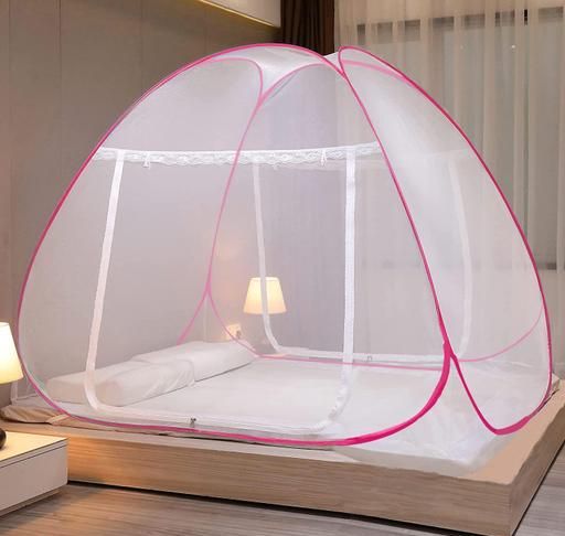 Name: Mosquito Net for Double Bed | King Size Foldable Machardani | Polyester 30GSM Strong Net - Pink