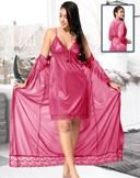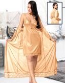 Jerry nightwear Women's Satin Short Length Nighty with full length Robe _Nightwear Set Pack of 2_(Red)(Ds. 10038)
