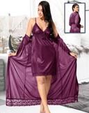 Jerry nightwear Women's Satin Short Length Nighty with full length Robe _Nightwear Set Pack of 2_(Purple)(Ds. 10038)