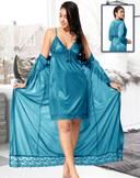 Jerry nightwear Women's Satin Short Length Nighty with full length Robe _Nightwear Set Pack of 2_(Golden)(Ds. 10038)