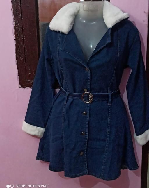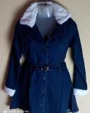 Collar fur, stylish coat with denim belt
