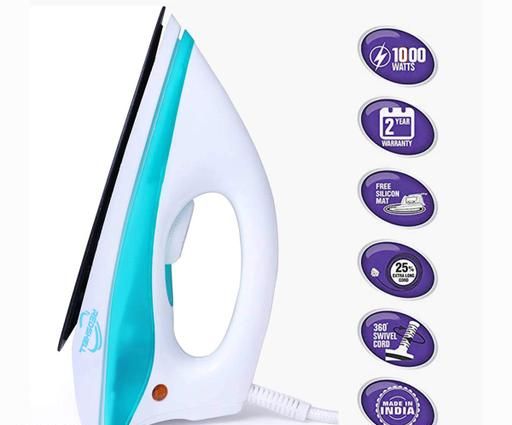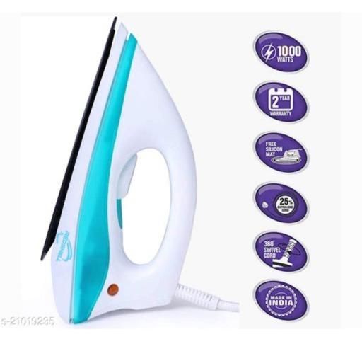 Name: 1000 Watt Dry Iron With American Heritage Non - Stick Sole Plate l Safety - Packed Electric Iron Press with Quick , Uniform Heating l 2 Years Manufacture Warranty
