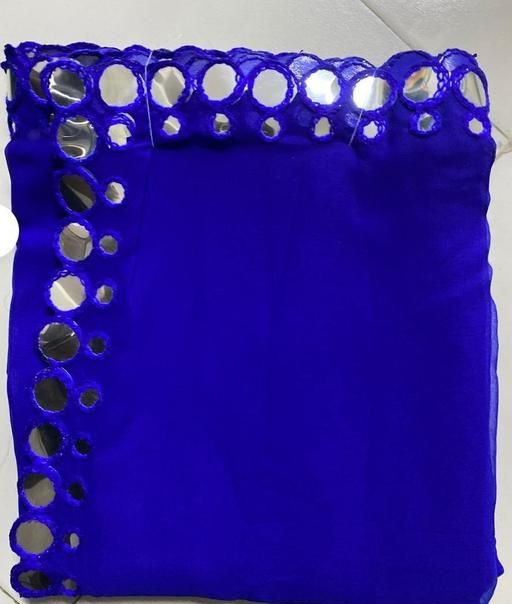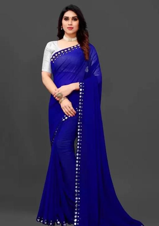 This is a Faux Georgette Plastic Mirror work Party Wear Saree.This Saree comes with an attached Art Silk blouse fabric which can be customised from 32" to 42