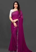 This is a Faux Georgette Plastic Mirror work Party Wear Saree.This Saree comes with an attached Art Silk blouse fabric which can be customised from 32" to 42
