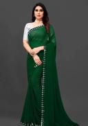 This is a Faux Georgette Plastic Mirror work Party Wear Saree.This Saree comes with an attached Art Silk blouse fabric which can be customised from 32" to 42