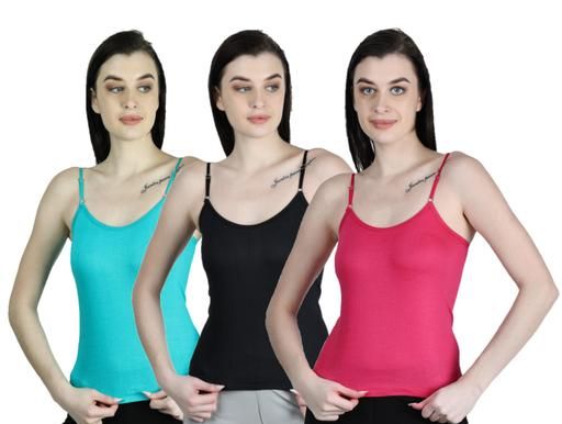 Name: Women's Camisole Slip Cotton Multicolor Pack of 3 Adjustable Slip with Elastic