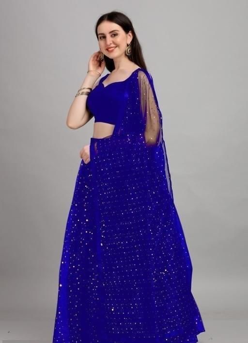 Name: NET WOMEN LEHENGA, Self Design Semi Stitched Lehenga Choli (Blue)|Lehenga Choli|