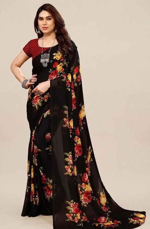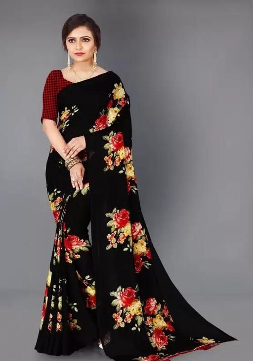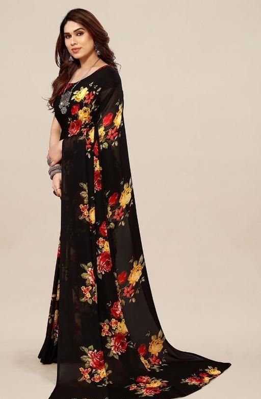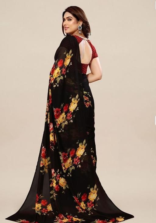 Name: Women's Desinger Georgette Floral Printed Saree with Blouse Piece