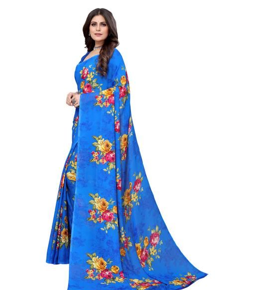 Name: Women's Desinger Georgette Floral Printed Saree with Blouse Piece