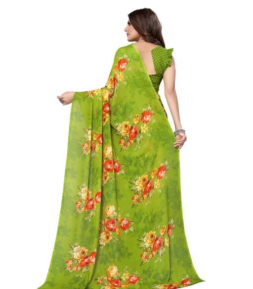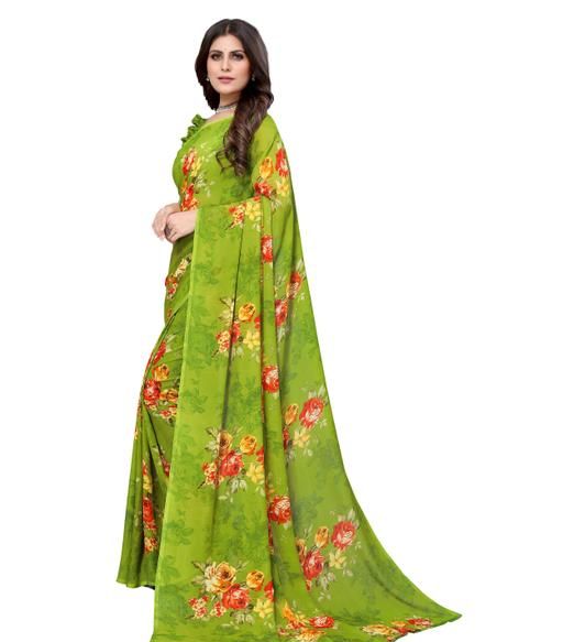 Women's Desinger Georgette Floral Printed Saree with Blouse Piece