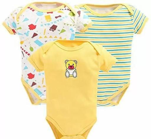 Name: SMILEY APPU 100% Cotton Baby Bodysuit Short Sleeve Half Romper Pack of 3