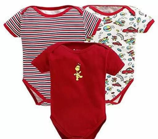 Name: SMILEY APPU 100% Cotton Baby Bodysuit Short Sleeve Half Romper Pack of 3