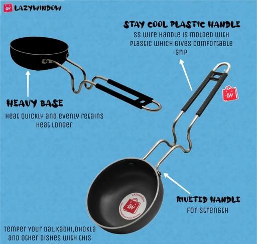 Experience efficient and flavorful cooking with this durable black-coated Tadka Pan. Designed to heat up quickly and distribute heat uniformly, this pan is perfect for tempering spices, frying, and searing with ease. Its deep, rounded bottom makes it ideal for low to medium-heat cooking, ensuring your food is cooked evenly while preserving authentic flavors.