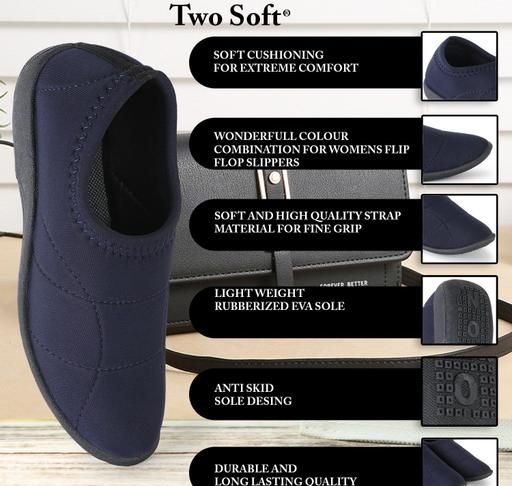 TWO SOFT Presents footwear range that Will Keep Your Feet At Great Ease, While You walk, run or work out in the Gym. These Are Light In Weight, Flexible And Very Comfortable To Wear As Well. Dashny brings you a pair of flip-flops in a casual and playful style. Made of natural rubber, they are comfortable to wear and are equipped with anti-slip soles to support a wide range of movement. These slip-ons are washable and durable and come in vivid colors which retain their original hue.The natural rubber's lightweight, yet dense build provides protective cushioning. Soft straps minimize pressure on the feet for all day comfort. The easy slip on and one the go shape is just about perfect for long walks in nature in solace, office or for that matter grocery shopping in the neighborhood on the pothole roads with dust and dirt. With style,colour and aesthetic value in absolute comfort, they are for woman with power in displaying elegant behavior at home, work and any walk , role of life they are in. Our latest collection, presenting a stunning pair that are not only chic but super comfortable, easy to wear on the go, will make a women feel like they are walking on clouds.